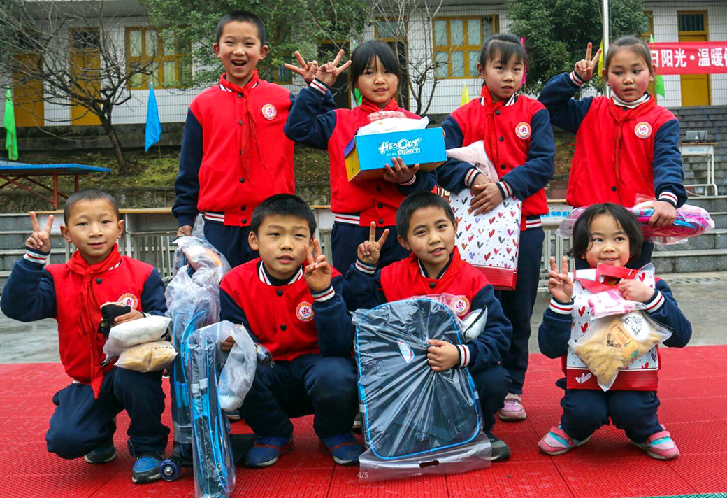 隘口壩芒小學(xué)學(xué)生領(lǐng)到新年禮物