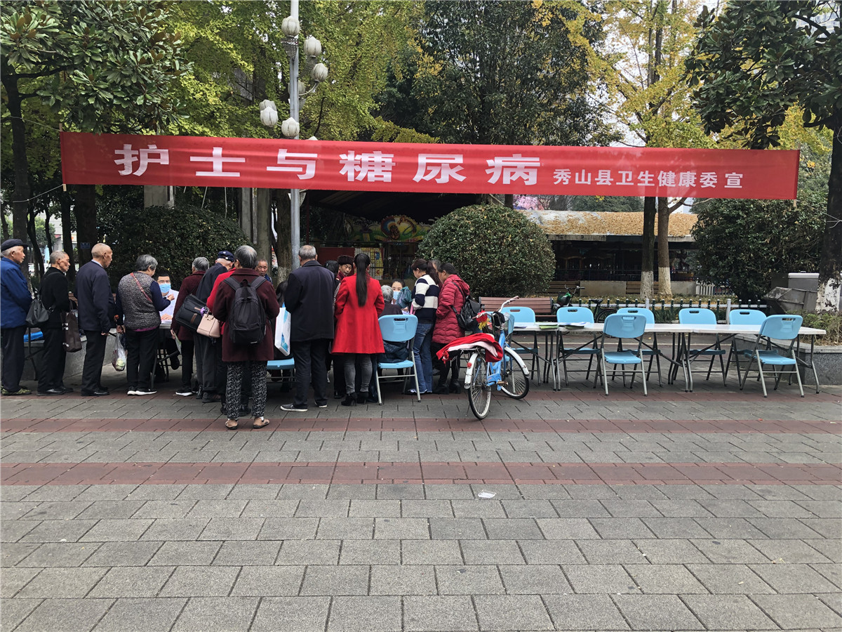活動現(xiàn)場。工作人員向咨詢群眾講解防治知識。秀山網(wǎng)訊 為普及糖尿病健康知識,預防減少糖尿病發(fā)病風險,11月16日上午,縣衛(wèi)生健康委組織縣疾控中心、縣人民醫(yī)院、縣中醫(yī)醫(yī)院、中和街道衛(wèi)生服務中心在花燈廣場開展“護士與糖尿病”健康知識宣傳活動。工作人員通過健康咨詢…